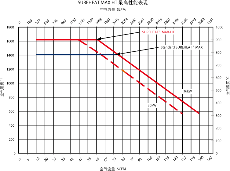 · 特殊构造的SUREHEAT MAX加热器可将空气及惰性气体加热至900°C(1652°F)