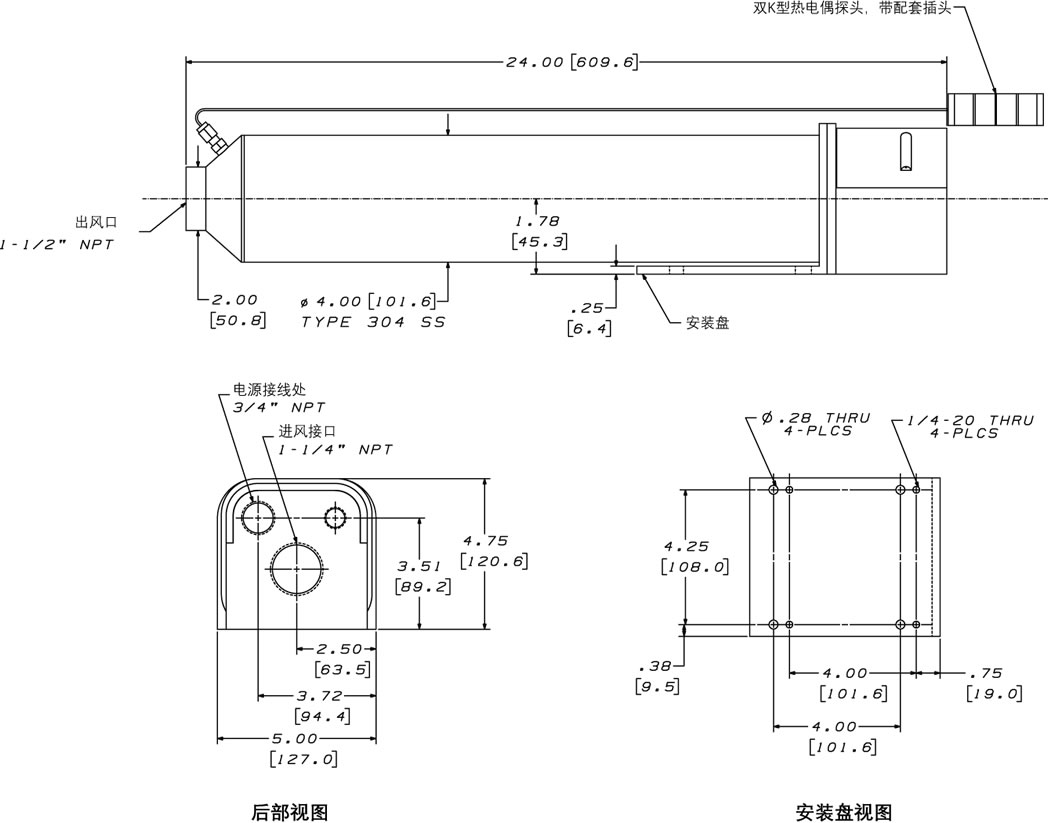 · 一条(1)双向裸露的K型热电偶探测器接头,用于精确温控及过温保护