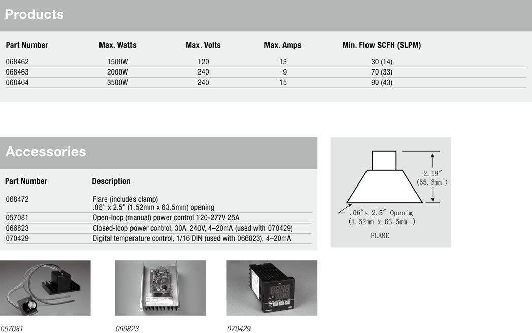 · 3' (914mm) power and thermocouple leads