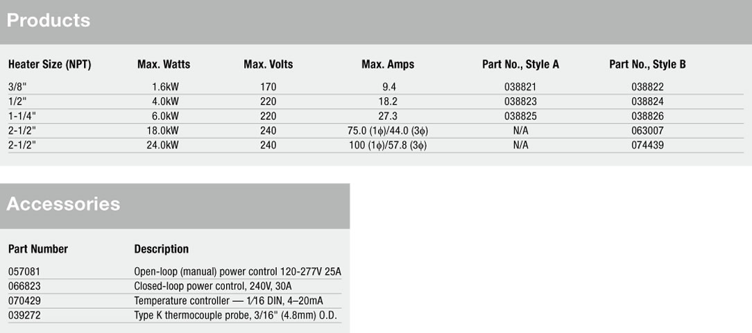 · Maximum inlet temperature 900°F (482°C)